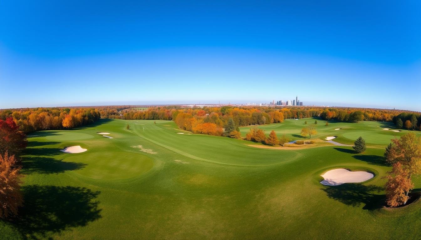 Metro Detroit’s golf scene is a mix of city and countryside. You can see the Detroit skyline or enjoy a peaceful “Up North” view. From top tournament courses to hidden spots, there’s something for every golfer.